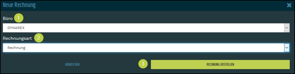 Im Dialog Neue Rechnung wählen Sie folgendes aus: