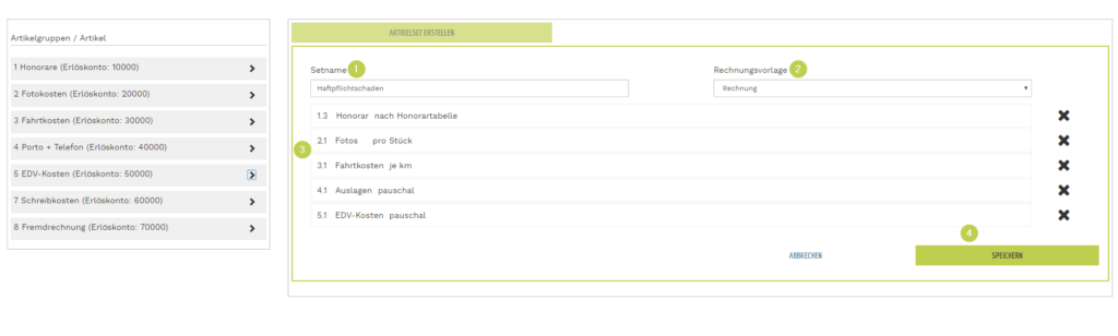 - 4. das Artikelset speichern