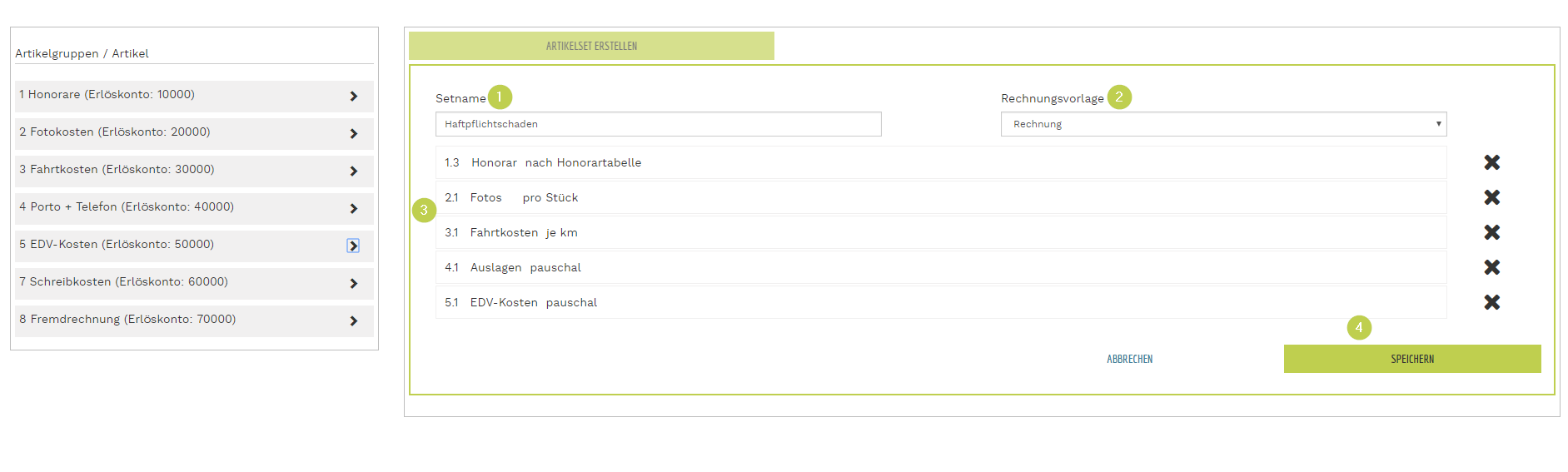 - 4. das Artikelset speichern