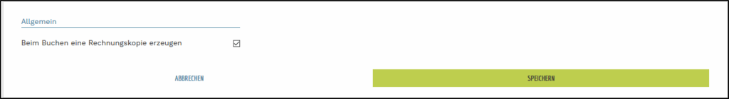 Aktivieren Sie das Häkchen bei Beim Buchen eine Rechnungskopie erzeugen, und klicken Sie anschließend auf SPEICHERN.