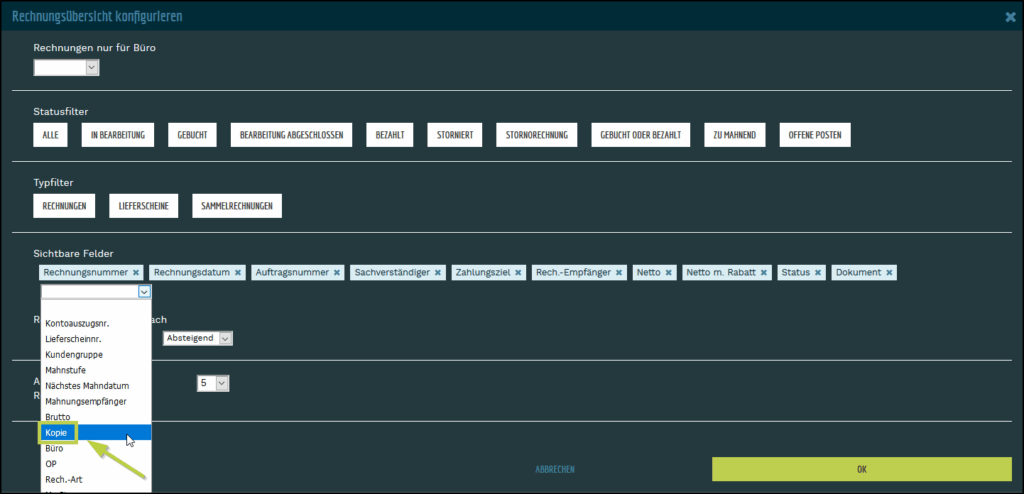 Durch diese aktivierte Option wird zukünftig beim Buchen neben dem Rechnungsdokument ein Rechnungsduplikat erzeugt.