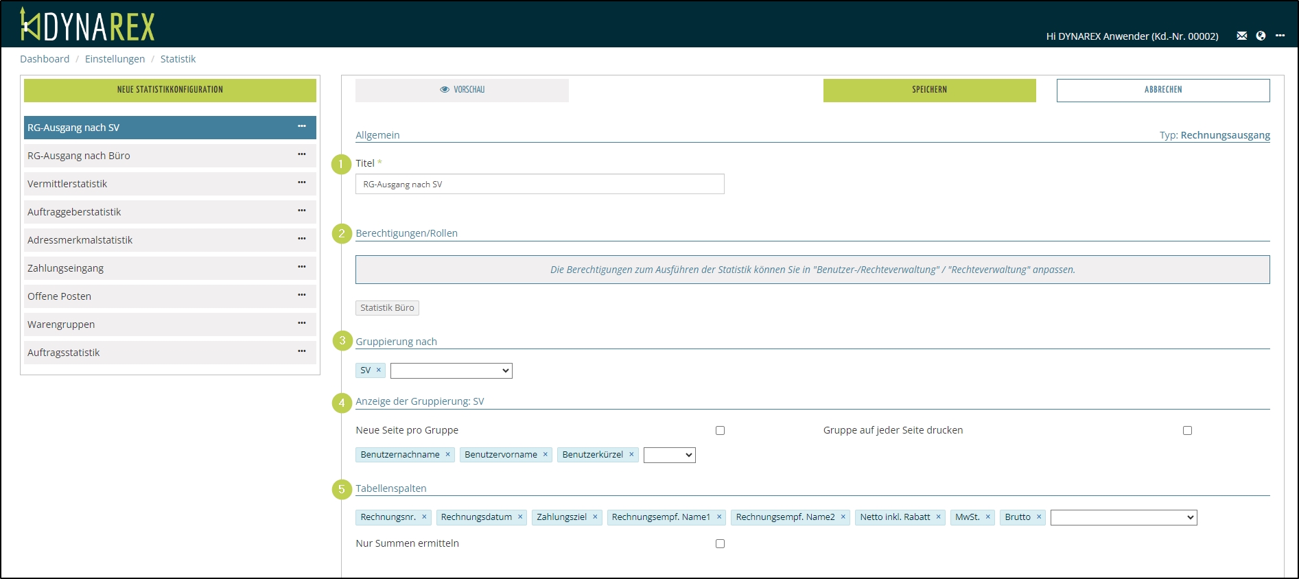 Die weiteren Auswahlkriterien (2) können individuell gesetzt werden bzw. sind je nach Einstellungen der Statistik bereits aktiviert.