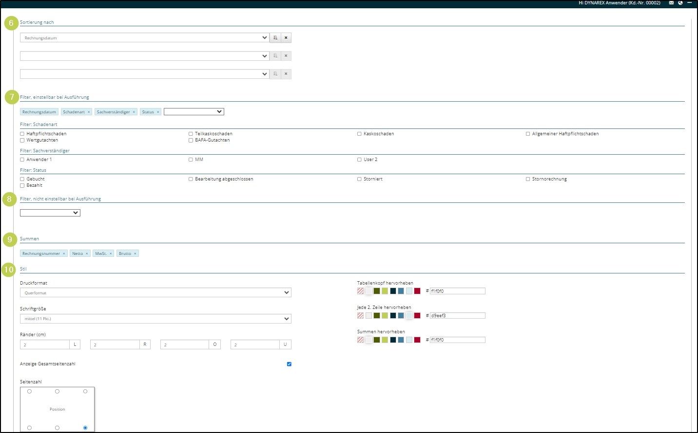 - Auswahl, ob nur die Summen (keine Detaildatensätze) angezeigt werden soll