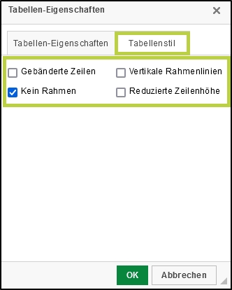 Unter „Tabellenstil“ aktivieren Sie nur die folgende Option: