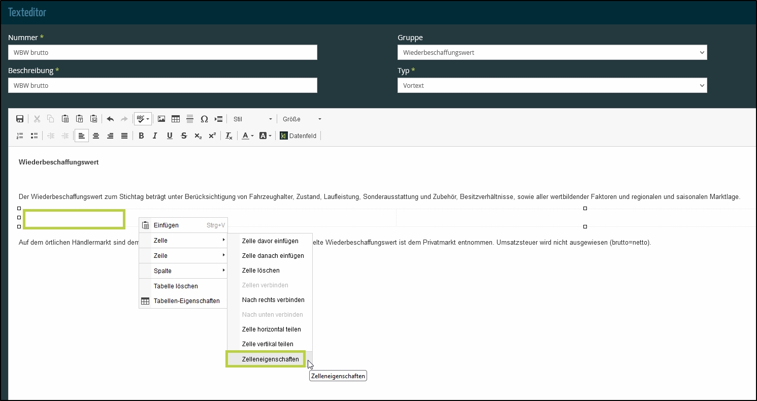 In diesem Beitrag zeigen wir Ihnen, wie man einen Baustein mit Ergebnisfeldern und Text (am Beispiel Wiederbeschaffungswert brutto) korrekt anlegt und formatiert.