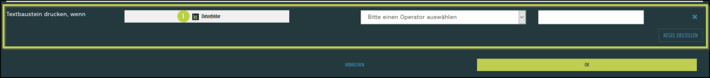 Es erweitert Sie der Dialog zur Erfassung einer Regel für den Druck dieses Textbausteines.