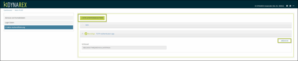 Generell – 2 Faktor Authentifizierung aktivieren: