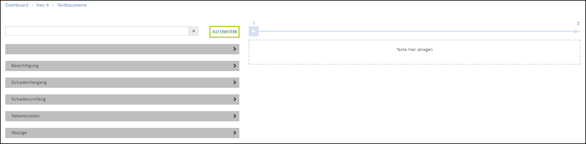 Mit dem Button ALLE ERWEITERN werden diese wiederum erweitert und die einzelnen Texte der jeweiligen Gruppe werden angezeigt.