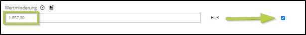 Daraufhin öffnet sich der Dialog Wertminderung. Die bereits erfassten Daten werden in diesem Dialog übernommen.