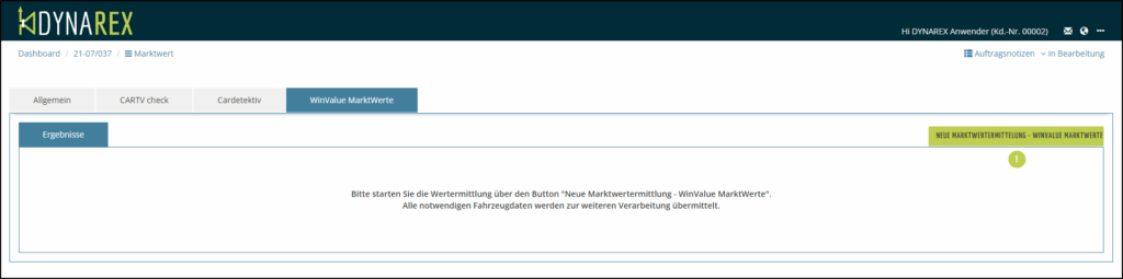 Über den Button NEUE MARKTWERTERMITTLUNG – WINVALUE MARKTWERTE (6) wird immer ein neuer kostenpflichtiger Abruf erzeugt.