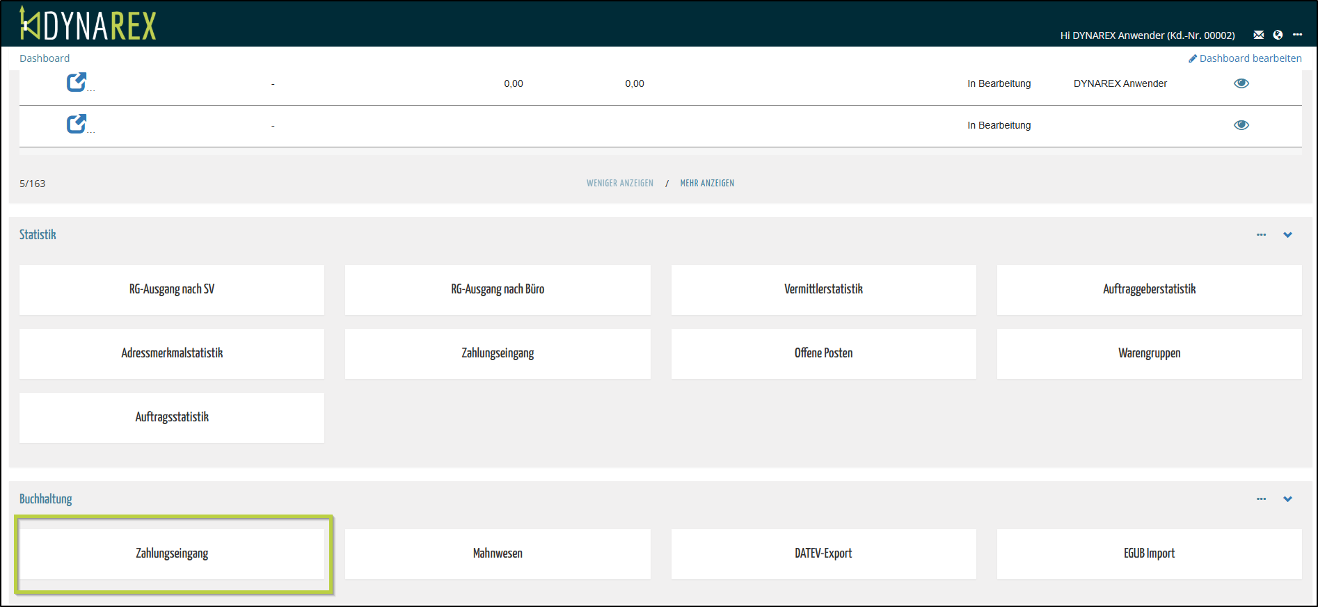 In DYNAREX haben Sie die Möglichkeit, Zahlungen zu verwalten.