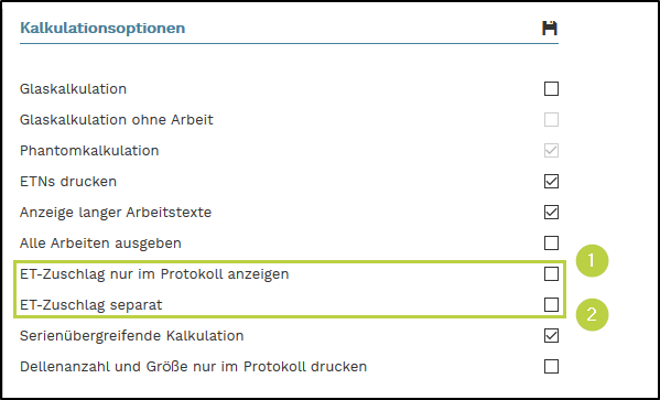 1. ET-Zuschlag nur im Protokoll anzeigen