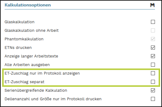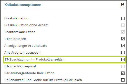 1. ET-Zuschlag nur im Protokoll anzeigen